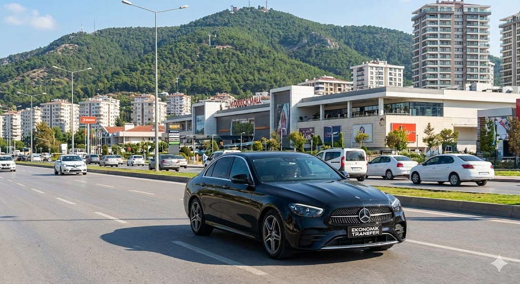 ![Görsel Yer Tutucu: Balçova İstinye Park AVM önünde bekleyen konforlu bir sedan araç. Alt Metin: Balçova AVM transfer hizmeti]